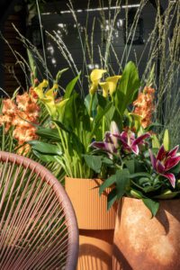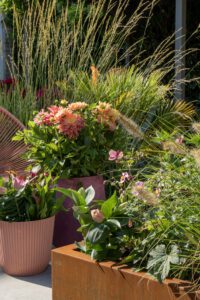 Hele pointen med ‘Bold Blooms’-trenden er haver, der udstråler varme og hygge. Forestil dig overdådige, stærke farver, bløde teksturer og en blanding af materialer, der smukt supplerer hinanden. I haven afspejles dette i bløde, runde former, komfortable møbler og bede fulde af frodige planter og blomster.