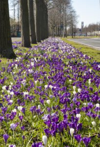 I foråret og forsommeren bliver vejkanter og rundkørsler beplantet med forårsblomstrende løg som kommunernes farverige visitkort. Når man blander de rigtige sorter, får man en kontinuerlig blomstringsperiode på op til fire-fem måneder. Sådan kan løgblomster forbedre kvaliteten af det offentlige rum for mennesker og dyr.