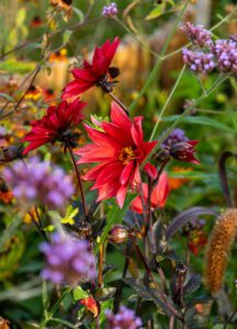 Dahliaer gør sig godt både i grupper og i blandede beplantninger og kan kombineres smukt med andre planter. Verbena bonariensis tilfører lethed, mens prydgræsser giver struktur og bevægelse. Kombinationer med sommerblomstrende planter som Canna og Crocosmia forstærker sæsonpræget. Dahliaer bidrager i enhver beplantning til en høj oplevelsesværdi.