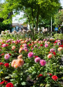 I stadig flere byer er dahliaer blevet en fast del af det offentlige grønt. I parker, vejrabatter, rundkørsler og plantekummer skaber de et langvarigt farveshow – og bidrager samtidig til biodiversiteten.